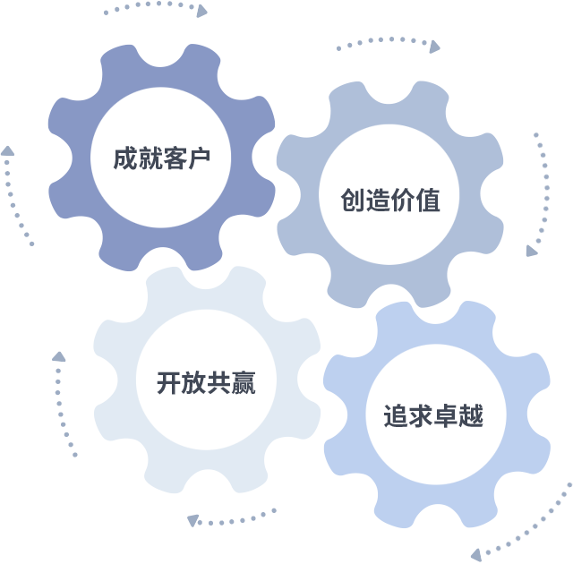 成就客户是一切决策的出发点,创造价值是衡量所有工作的标准,追求卓越是BBIN·宝盈集团做事做人的态度,开放共赢是BBIN·宝盈集团的格局也是最终的结果。价值观的齿轮环环相扣,推动着组织里的每个人不断向前。
